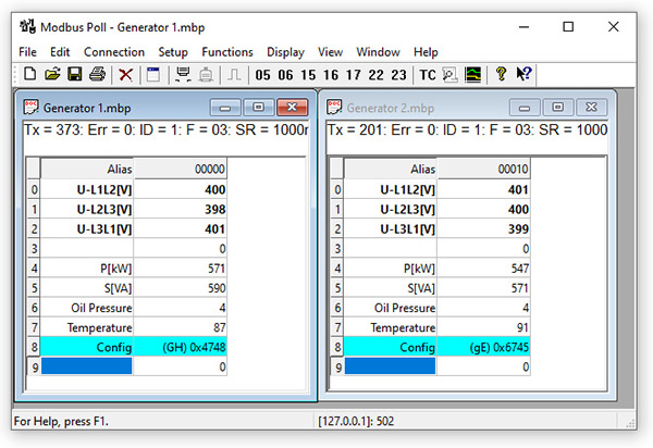 在这里,您可以定义要在窗口中显示的数据。该设置显示了如何从地址0读取10个保持寄存器。在某些协议说明中,地址为40001。请注意,Modbus轮询使用始终从0开始计数的Modbus地址。