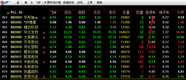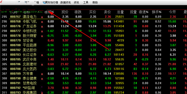 3、图中绿色的数值就是股票跌幅,可以查看具体下跌的指数。