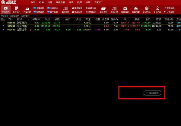 4、在行情里面我们也可以添加自选,当然如果已经有账号的朋友之前添加的自选也会在这里出现;