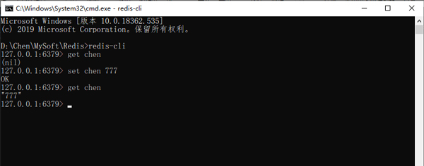 再打开一个新的cmd窗口,切换到Redis安装路径,输入 redis-cli 连接到 Redis 服务