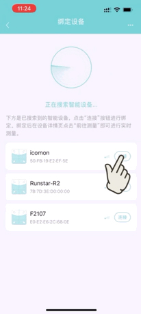 ②如果当前APP已经已绑定别的秤,要让APP再增加这一个秤,请在【我的】-【我的设备-【+】-【蓝牙搜索配对】-【连接】,连接新的设备。