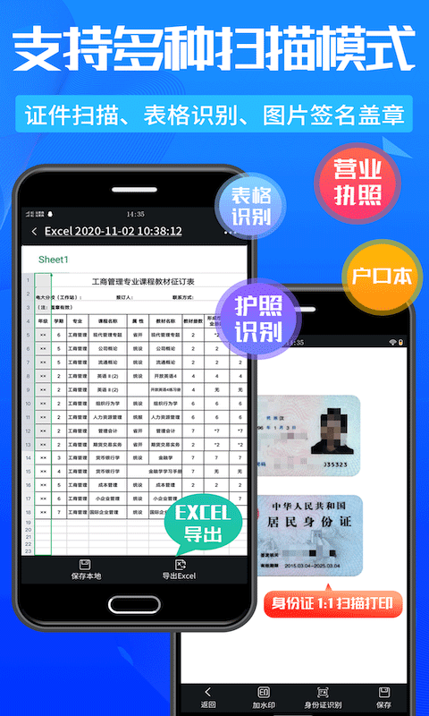 拍摄身份证,自动1:1适配到A4纸上,支持自定义添加水印