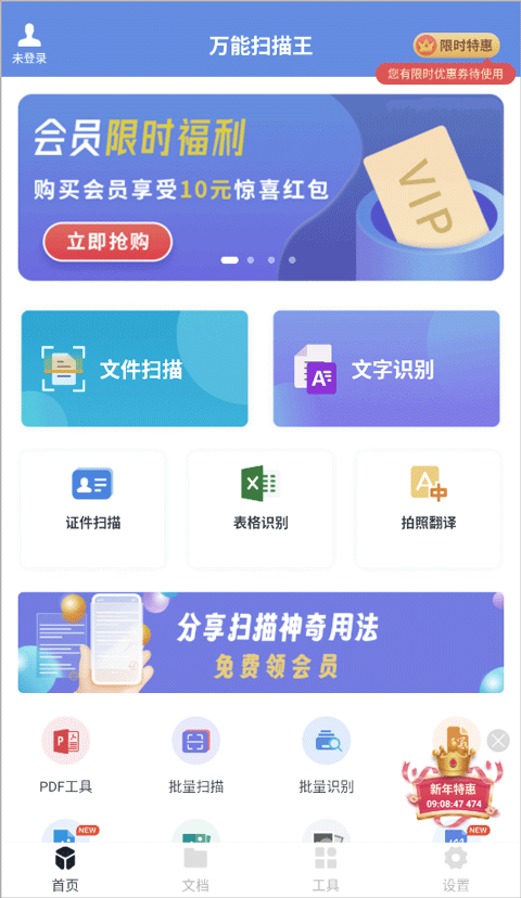 万能扫描王是一款非常好用的手机扫描软件,支持批量批量扫描和批量文字识别,支持历史文件轻松管理及分享导出,除此之外,它能够帮助用户将您扫描的文档、Excel表格、身份证、护照、书本、报纸、名片、PDF、手稿、图片通过OCR文字识别技术自动识别、提取图片文字、解析信息。