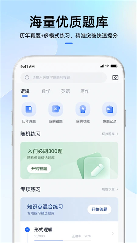 包含各科近20年5000+道真题,文字解析详尽,还有1000+道高质量的模拟题,支持拍照、关键字等形式搜索题目,可快速准确搜到目标试题。