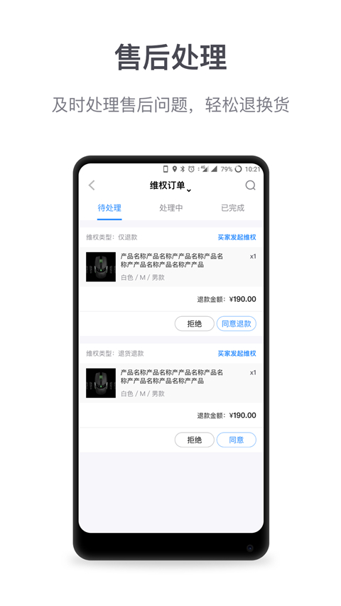 消息通知:待发货、已完成、异常物流、售后订单消息及时通知;