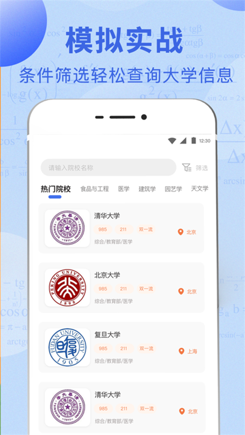覆盖国内各大高校,想查询的985/211/双一流高校情况随时掌握,帮考生快速选择心仪大学。