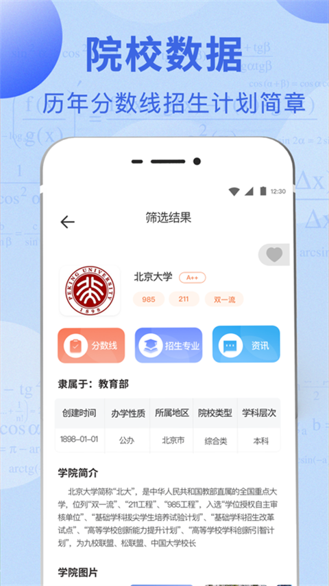 条件筛选,根据你的情况,自动推荐适合报考学院,并轻松查询该大学信息。