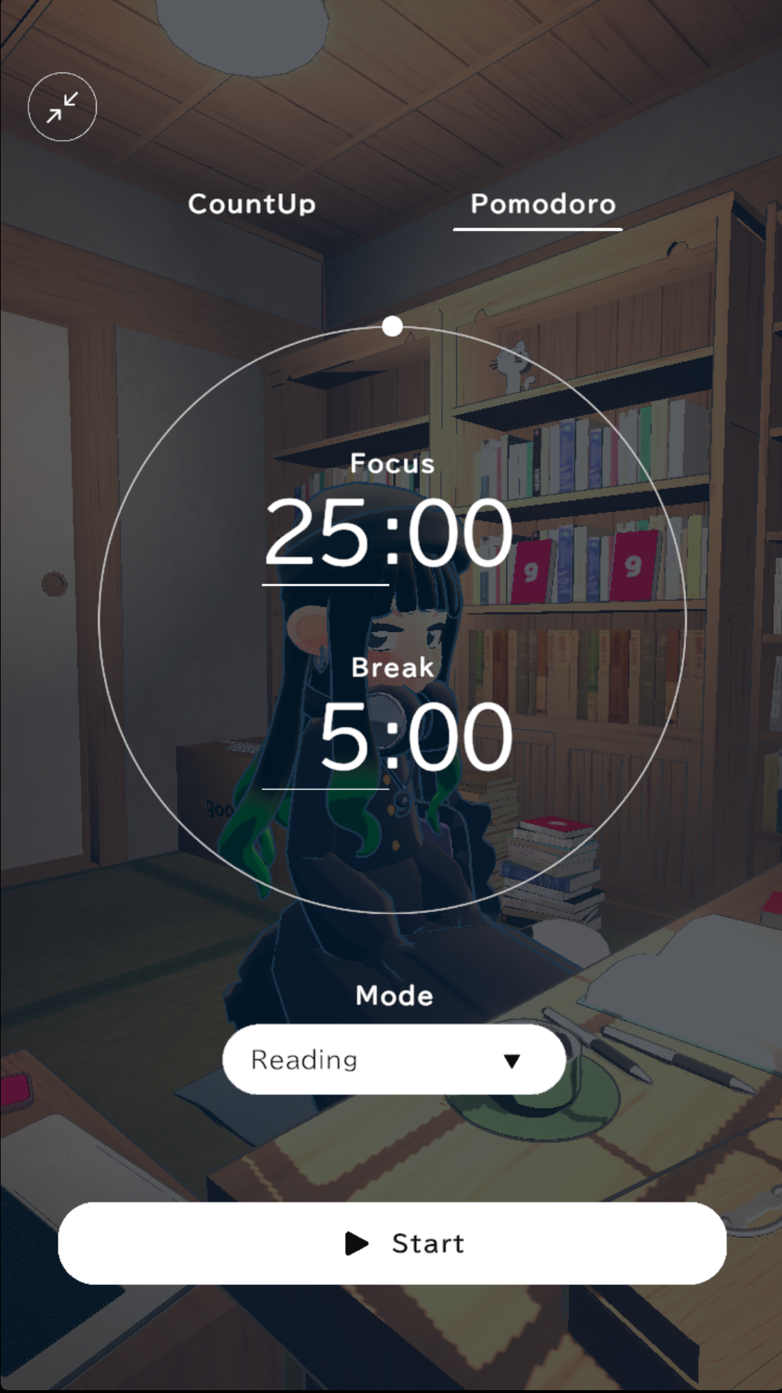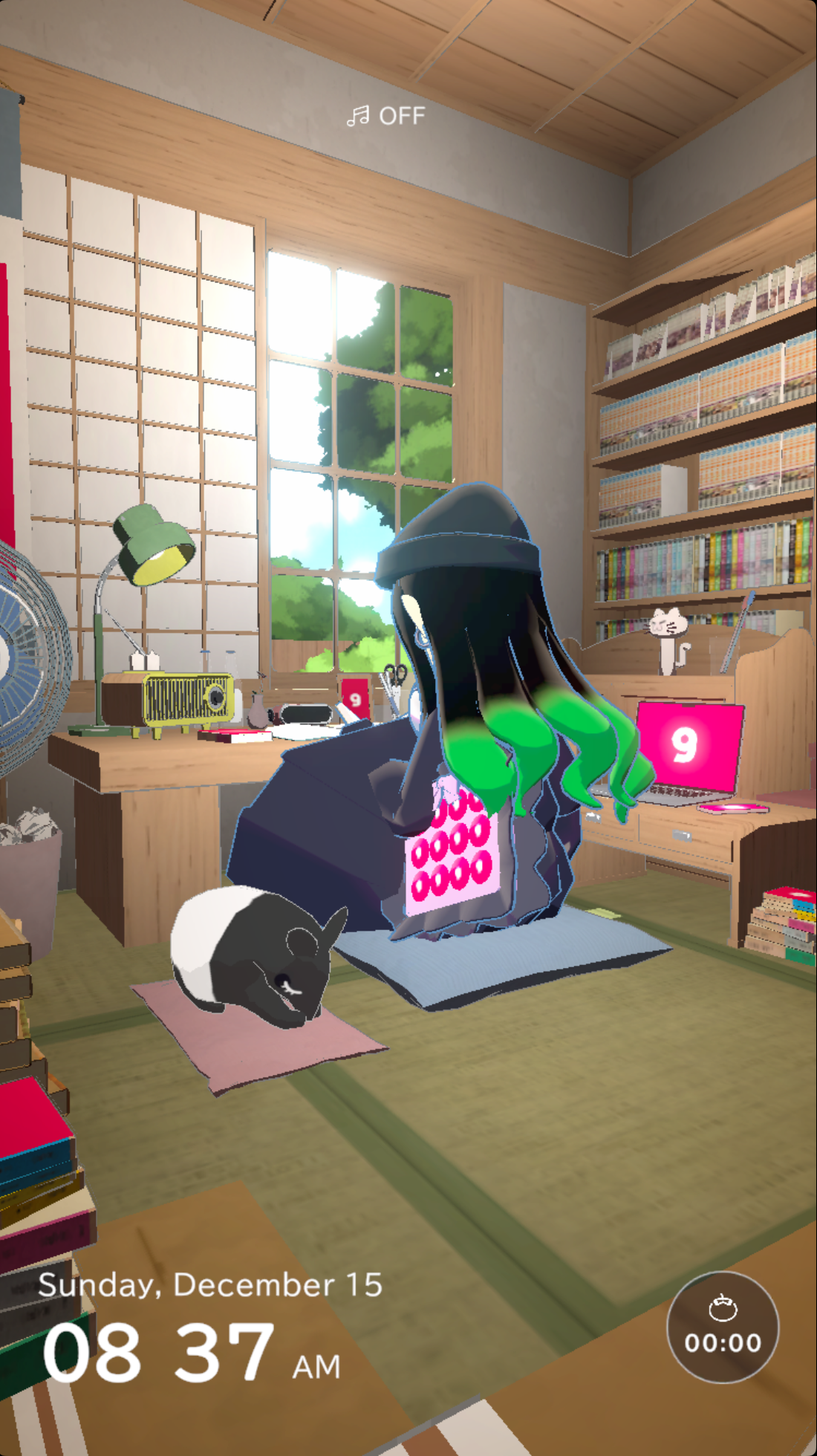 gogh电子痛房最新版本游戏内置了番茄时钟,各种不同的白噪音和背景音乐供玩家选择,屋外的时间环境也可更换,从白天到黄昏再到黑夜,给角色更换各种姿势与动作,可以看书、玩电脑、玩手机和发呆等,在专注模式下陪伴玩家,给玩家营造一个适合学习与工作的沉浸式环境。快来下载创造属于自己的虚拟形象和电子痛房吧!