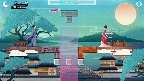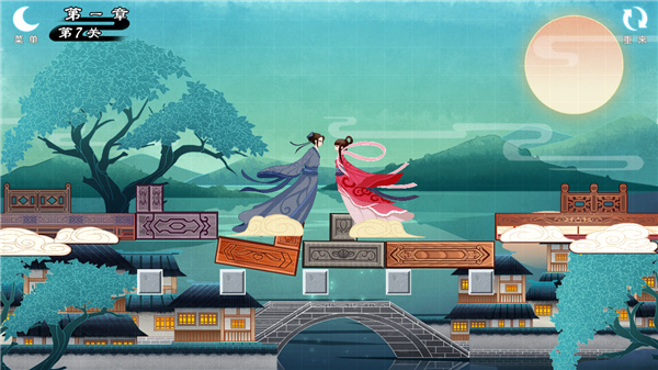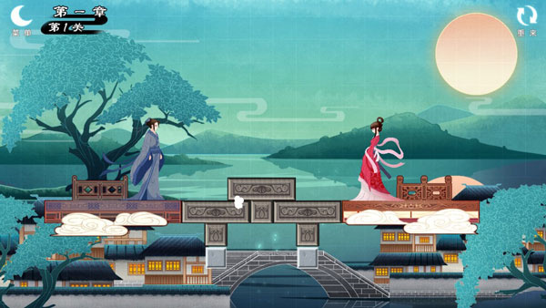 谜桥是一款非常新颖好玩的冒险解谜游戏,相传古时牛郎与织女相恋,却为王母所拆,天帝仅允许他们每年七月七日(农历)相会,无数喜鹊也感其爱情的坚贞,飞身搭建鹊桥助其相会。谜桥游戏以大家耳熟能详的中国古代著名的民间爱情故事“牛郎织女”的作为原型。