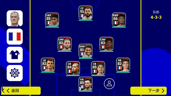 4、固定阵型我用过最顺手的是4-3-3防守阵型,反击的时候两个边锋前叉积极,直塞容易形成以多打少,很适合新手。