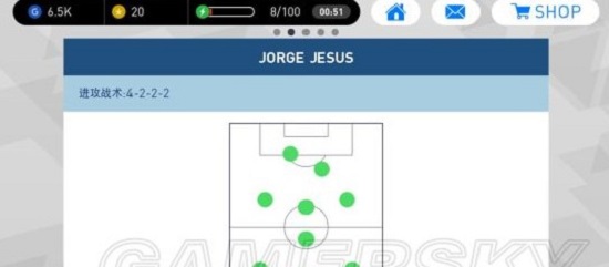 2、阵型:每个教练持有的阵型不同,应选择适合已有球员上场的阵型和适合自己打法习惯的阵型。