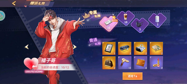 赠送礼物提升好感:每个合伙人都有四种专属礼物,橙色可加1000好感,紫色400,蓝色200,绿色100,非专属:橙色500,紫色200,蓝色100,绿色50(升级不会清空已送好感)