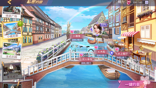 PS:手动通关好感度>一键通关(第三处约会地点手动赠送礼物,多40好感度)