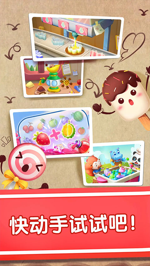 4、开店赚金币,宝宝(儿童)在好玩的奇妙冰淇淋餐厅把美味的冰淇淋卖给大熊猫、熊大熊二等小动物们,做好的冰淇淋卖给小动物美美拍得更多金币,解锁更多超赞的配料和道具