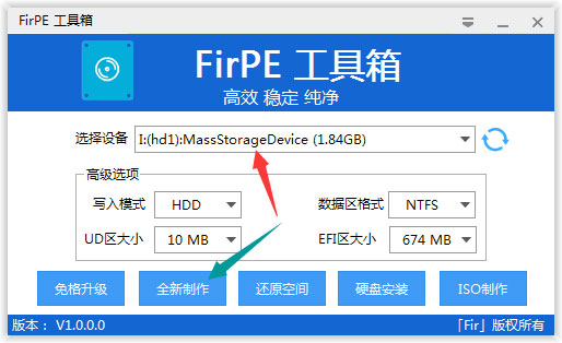 WinPE模块需在已制作好FirPE的U盘下,追加其他WinPE。