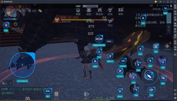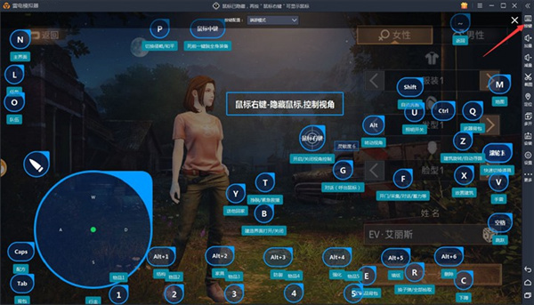 2、游戏成功启动后,点击模拟器右侧工具栏按键按钮(键盘样子)进入按键设置界面;按F12可以查看雷电官方设置的默认按键。