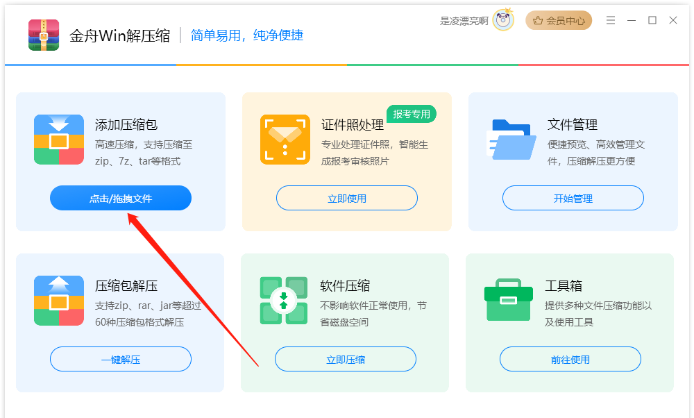 1、电脑上选中多个文件拖拽到软件以下位置,或点击「添加压缩包」选中电脑多个文件(按住Ctrl键多选);