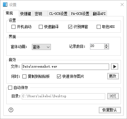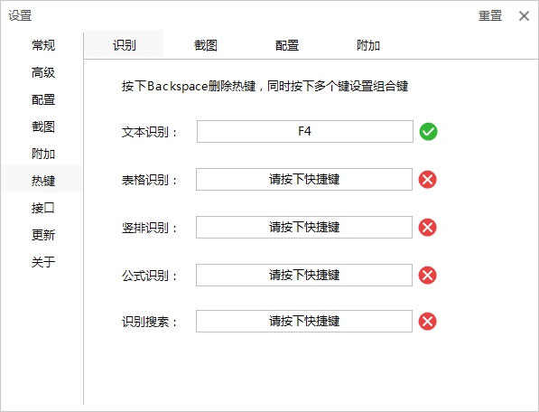 在热键选项卡里,用户们能够自行设定各个功能的快捷按键,保证更加顺手的进行识别工作。