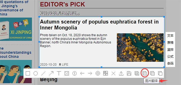 此功能能够帮助用户们自动翻译选取截图区域的其他语言。