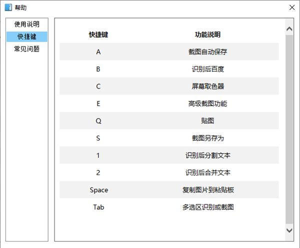 7、整款软件的使用方法十分简单,当你还有其他疑问时,可以在帮助界面中,了解详细的使用说明、快捷键以及常见问题,从而更好的进行使用。