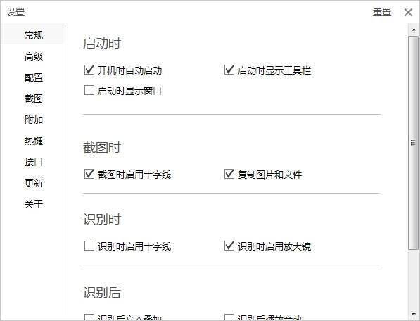 在常规选项卡中,用户们能够设置一些截图时的选项,比如在某个过程中启用十字线,或是取消软件的开机启动等;