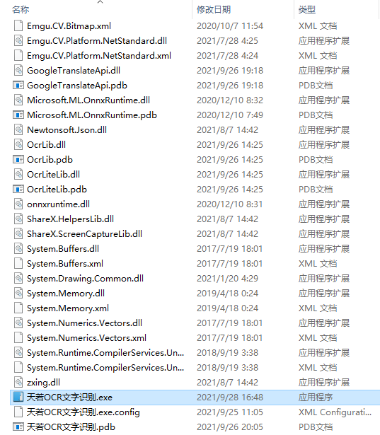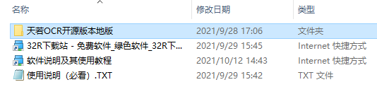 2、打开软件包,找到天若OCR文字识别.exe双击即可运行,无需繁琐的安装教程;